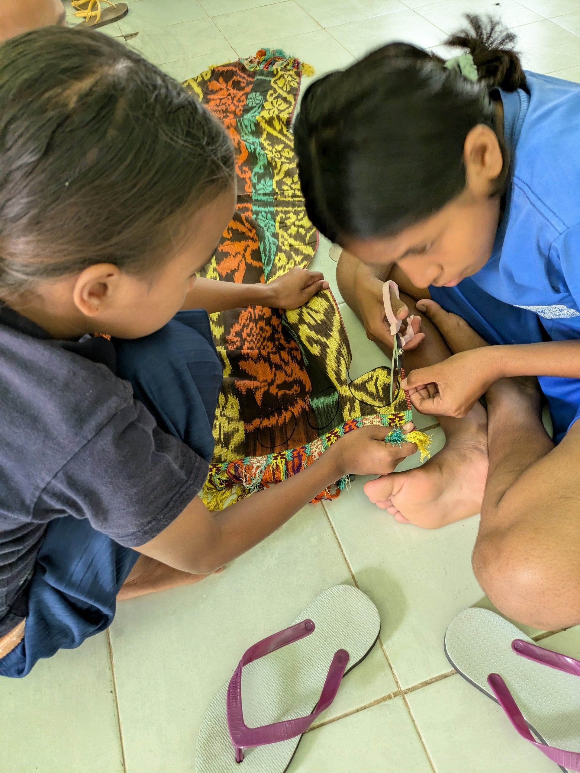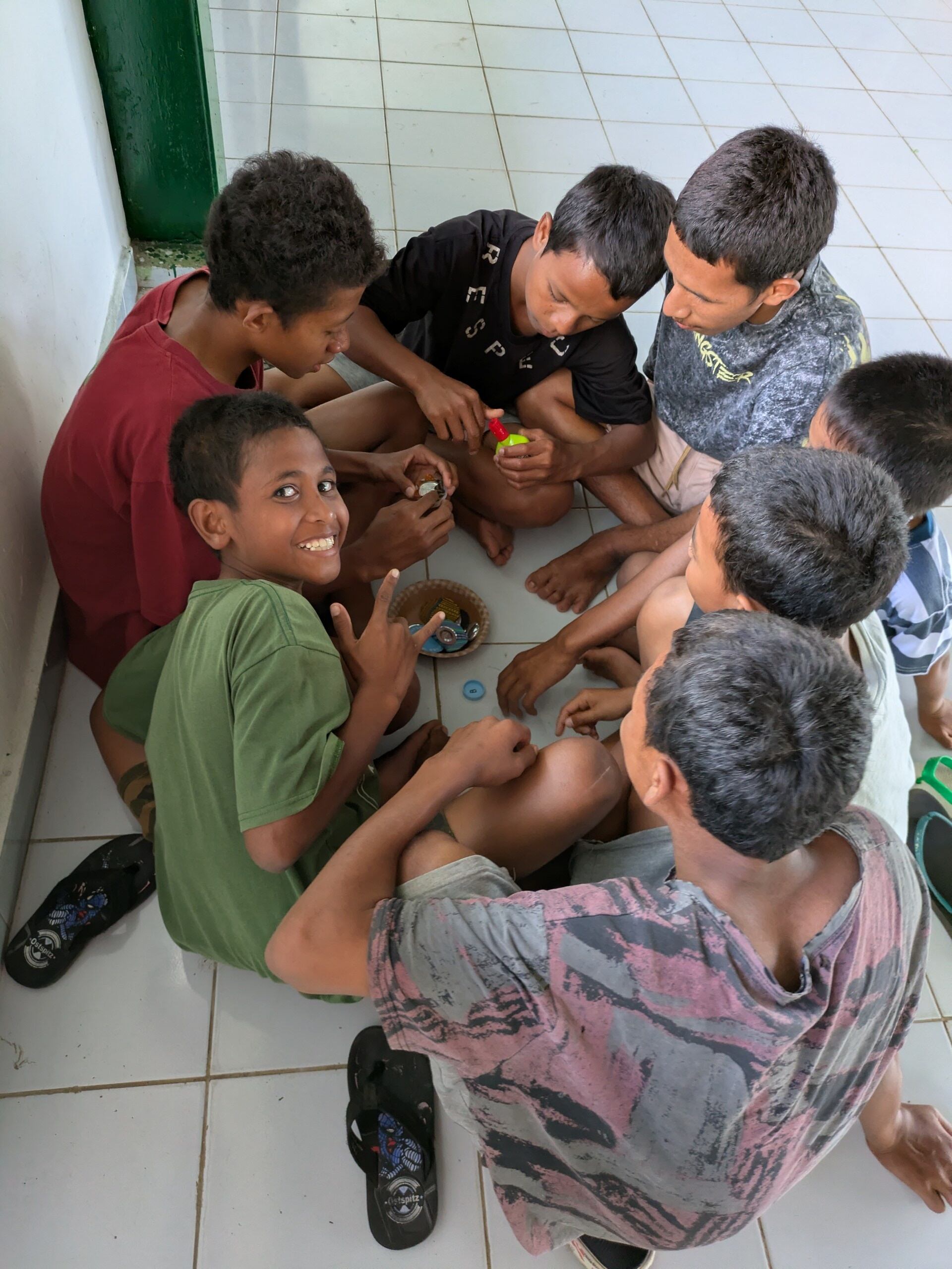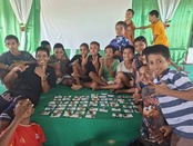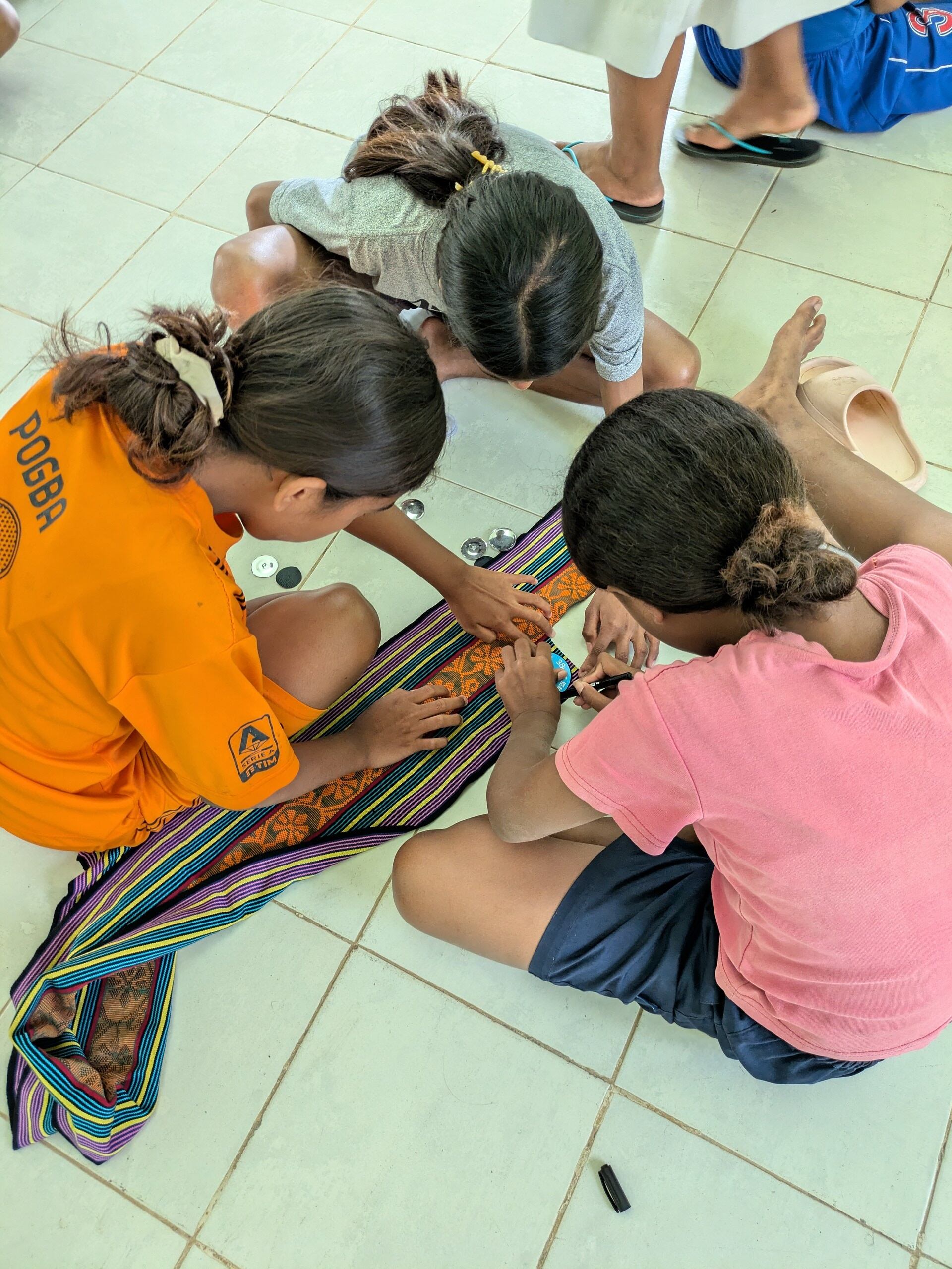 東ティモール・ラガ・ロスパロスの孤児院で子供たちが作ったクルミボタンのゴムとブローチです。